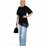 Camiseta negra con detalle de encaje Eleva tus looks diarios con esta sofisticada camiseta negra de diseño minimalista y toque femenino. Confeccionada en tejido suave y fluido, presenta manga corta amplia y corte recto que estiliza la silueta y aporta máxima comodidad. El detalle protagonista es su delicado acabado de encaje en el bajo asimétrico, […]