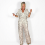 Conjunto fresco y elegante de dos piezas. Camisa: de manga corta, corte relajado y cuello clásico, con estampado de lunares que aporta un toque chic y moderno. Pantalón: de tiro alto y pierna amplia, súper cómodo y fluido, ideal para estilizar la figura y usar todo el día. Perfecto para un look casual con estilo […]