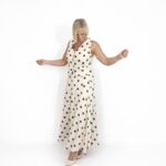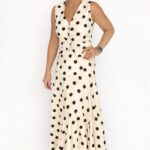 Chaleco sin mangas con botones y corte entallado que realza la figura, combinado con falda larga fluida de lunares que aporta movimiento y estilo. Perfecto para un look sofisticado y fresco, ideal tanto para el día como la noche.
