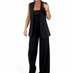 Conjunto elegante y versátil en negro compuesto por chaleco sastre largo y pantalón de pierna ancha. El chaleco, de corte recto y solapa clásica, estiliza la silueta y aporta un aire sofisticado y moderno. El pantalón fluido de tiro alto con caída amplia alarga visualmente las piernas y garantiza comodidad durante todo el día. Ideal […]
