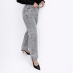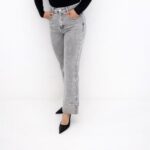 Tejano gris brillos bajos, tiro alto y licra.