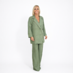 Conjunto elegante y moderno compuesto por blazer de corte amplio con doble botonadura y pantalón largo de pernera ancha. Confeccionado en tejido ligero y cómodo, ideal para un look sofisticado tanto de día como de noche. Su tono verde aporta frescura y estilo, perfecto para combinar con diferentes accesorios y ocasiones. ✨